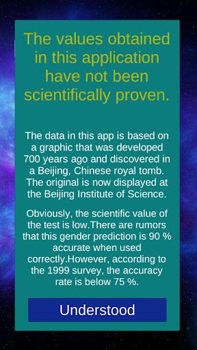 The data in this app is based on a graphic that was developed 700 years ago and discovered in a Beijing, Chinese royal tomb. The original is now displayed at the Beijing Institute of Science.