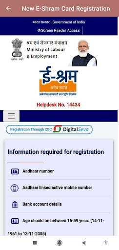 In this App you will find the service which is available in the following official public domains. https://eshram.gov.in/ Because the official website is loaded in this application. But this application is not official.