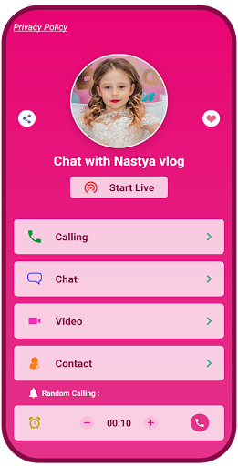 and fake video call with a simple live chat, Enjoy calling Like Nastya video calling with easy way,feel free and download this like nastya Game video call for have fun with friend.