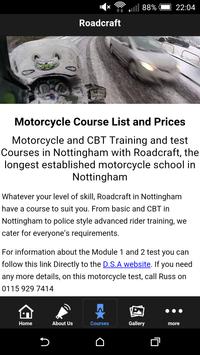 Motorcycle CBT and module 1 and module 2 test training in Nottingham, covering Derbyshire, Leicester, Mansfield and surrounding areas. Roadcraft School of Motorcycling is Nottingham’s and one of the world’s oldest and most experienced motorbike schools and was established in Nottingham in March 1989. We are fully approved by the Driver and Vehicle Standards Agency or DvSA for CBT training and road test lessons which means that our motorcycle training and CBT in Nottingham is kept to the highest possible standards at all times.