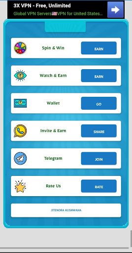 This is a spin and earn application ismein you will also get options to watch video and referral and earn option for more earning you can share this app to more people by joining it you can earn great earnings and even with the spin and watch video you can earn a lot of money.