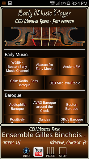 Includes hard-to-find stations, playing Early and Baroque Music.
