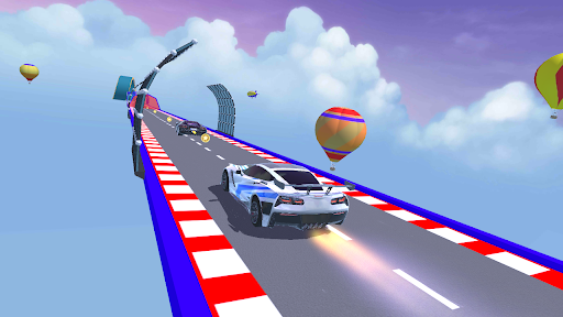 Control your supercars using the Left, Right, Acceleration, and Brake buttons. The first few levels are super easy to play, so you can check and practice the controls of these stunts cars. You will face hurdles and checkpoints. Race against the clocks to clear checkpoints as soon as possible to earn some extra coins and bonuses. The first car is unlocked while other stunts racing cars are locked. You will have to unlock these cars using the collected coins. That's why collect as many coins as possible and also try to finish the race in the shortest possible time to earn bonuses. In the next levels of this mega ramp car racing game 2021, you'll have to clear the loops. These loops can be cleared only by supercars in the nitro mod. That's why you will see a nitro button there to boost the speed of your crazy supercars. By pressing the nitro button, a piece of supercool crazy music will play in the background, and the particles effect will pop up to make you feel relaxed and wow.