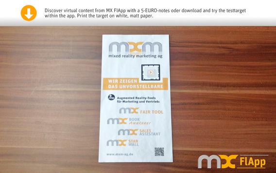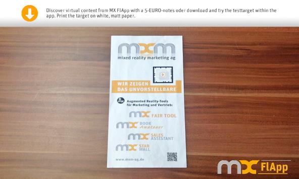 Directly try it out for yourself with a normal 5 Euro banknote: start MX FlApp and point the camera of your smartphone or tablet towards the front side of the 5 Euro note to automaticly reveal the connected 3D-content! If you don't have a 5 Euro note now you can download and print another test image here: