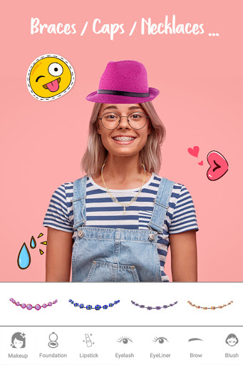 Choose your favorite picture or take a new one from the app camera. Start editing and choose from many makeup tools. Put on cool photo stickers, amazing accessories and save your altered look to stay classy. You will adore each and every makeup tool that will brighten your face, remove and imperfection and keep you in touch.