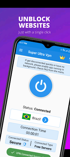 Super Ultra VPN uses fast VPN connect technology to unblock websites, secure your device and provide privacy. It has been widely used for unblocking sites, watching online videos, secure WiFi hotspots, bypass blocked apps as well as browse the website anonymously.