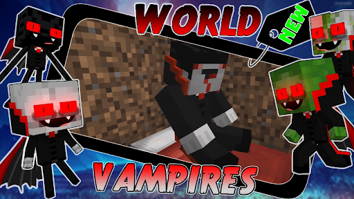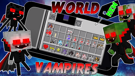 Become an ancient vampire - the night horror of all the villagers and cities, the thirst for blood will move your body and teeth. Be prepared that the pixel world will be hostile and aggressive towards creatures, some mobs will transform into bounty hunters. Experience supernatural abilities and fight with a werewolf to level up. The cube world will be filled with new items - cups of blood, vampire potions, elixirs, garlic, new weapons and armor. There will be new mobs in the game: vampire animals, converted villager, dark seller, lumberjack, priest and other monsters. To transform into a bat human or just a night stalker, you will need to perform a ritual, for this you will need furniture - a ritual table. For crafting, you need to combine the teeth of a vampire and a workbench, you will have superhero reflexes, the game will become faster and more enjoyable, and your running speed will approach the flash, you can transform into an animal - a bat in one click and there will be an unquenchable thirst for blood. The only negative is the unbearable sunlight. Your map will be replenished with another biome, dark forest is an improved forest biome only in dark gloomy light with improved textures and shaders. You shouldn't go there, it's a dangerous place and the most popular mob there are vampires and werewolves. The world will become scary. You can download free alpha vampire skins for both girls and boys. After you add these creatures to your map, your adventure will become more dangerous, but in survival mode you can watch the action of the battle between the queen of bloodsuckers and bounty hunters. The extraction of resources and blocks will move to a different plan, first of all, you will be interested in battles.