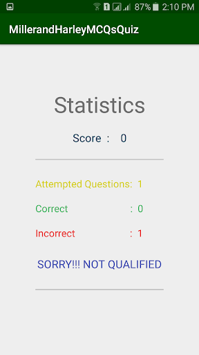 you everything like your attemted questions,correct questions ,incorrect questions and your score and your high score is also save of every test so your Knowledge is incresed