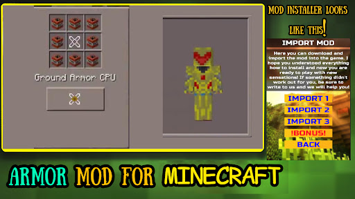 Adds many types of new armor to the world of Minecraft PE. Each of them has not only unique characteristics, but also gives the player certain abilities. With such types of armor, not a single enemy in the block world will be afraid of you.