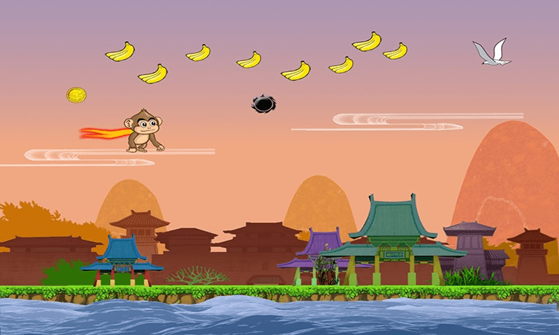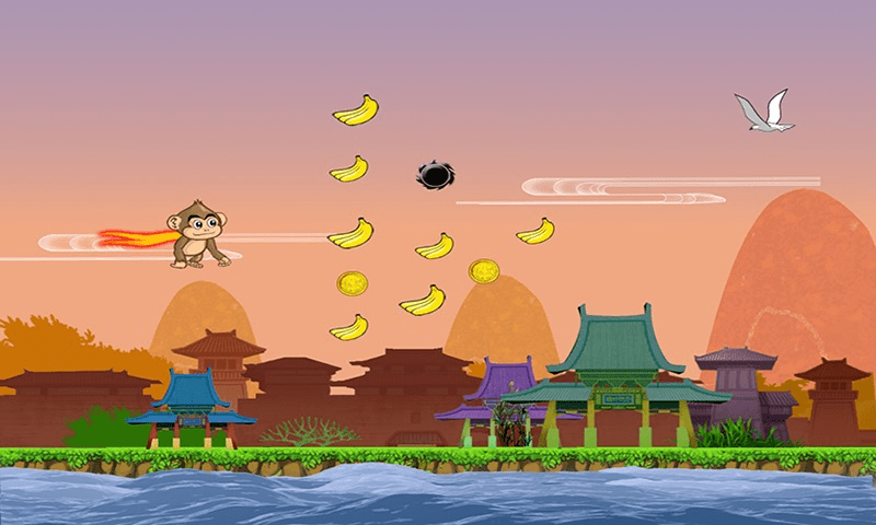 Keep jumping by drawing a bamboo with you hand in the right place for your Monkey. Eat the bananas and coins to get points but avoid the bombs to not fall. Let the Monkey touch the bird to fly and get more points. FEATURES - Nice graphic, fun & very addicted - Simple tap control, easy to play and suitable for all ages So have fun and test your reflex and your precision ! • - Beautiful cartoon & hand drawn like graphics • - Fun physics based gameplay (swing a monkey along ropes to get forward) • - Make your run through various landscapes (temple ruins, waterfalls and jungles) • - Collect fruits like bananas and chilis to gain more upgrades • - Unlock special powers such as a jetpack, chili speed boost and eagle ride • - Different kinds of ropes (vines, snakes, burning ropes etc.)