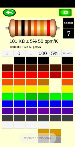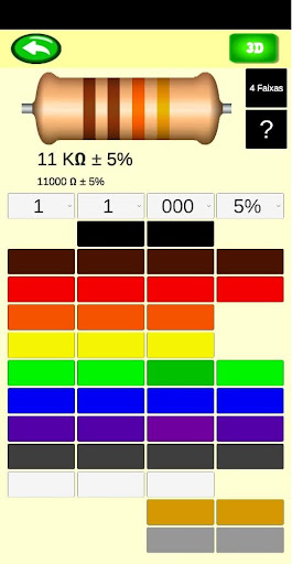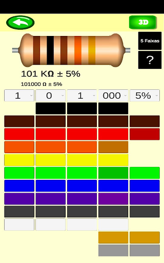 इस एप्लिकेशन के साथ रंग कोड की जाँच करें और 3 डी सिमुलेशन छवि में वांछित कोड देखें।> 3, 4, 5 और 6 रंग बैंड के लिए डिज़ाइन किया गया।आप विभिन्न ट्रैक्स के साथ रंग की भीड़ के साथ काम कर सकते हैं।