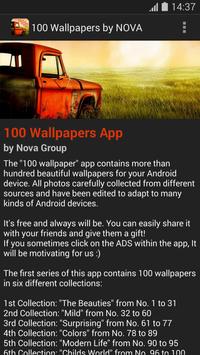 The "100 wallpaper" app contains more than hundred beautiful wallpapers for your Android device. All photos carefully collected from different sources and have been edited to adapt to many kinds of Android devices.