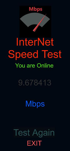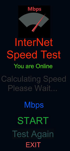 -To check the internet speed just click on Start Button and wait for some seconds. then speed will be displayed on the screen in Mbps.