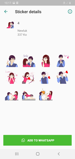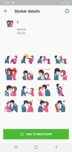 love with the new collection of romantic love stickers for WhatsApp (WAstickerApps). Share these Animated Romantic WAstickerApp with your lover and make your conversations more warm and cozy. With our stickers you’ll be able to express your feelings better and have a lovely conversation with your lover. You can free download WhatsApp stickers!Send love stories and cute couples holding flowers stickers to your lover. You can share saying sorry or saying I love you stickers. We are updated sticker pack having I miss you stickers and love quotes. Send good morning and good night stickers to your love. You can even find cute fluffy animals that everyone adores. New Stickers Love Story Pack.Now shock your friends using this ultimate stickers pack and send kiss stickers to your love. Best love stickers and emoji for WhatsApp is available. This wastickers app contain all varieties of love stickers. We carry you the best wastickers app with which you can share emoji stickers packs with your lovers. With WAstickers for WhatsApp express your feelings with cute stickers and awesome couple stickers. This app will provide you a different way to prompt you feelings for couple love. Now send tremendous Love emojis on this Valentines day to express your love for your partner. This new love wastickers app has a collection of emoji HD stickers and love couple stickers to add them to your chatting. Best chatting stickers and emoji collection stickers. You are looking for app stickers to express your love to your lover then you are at the right place. Love stickers could express more than any wording conversation. We make amazing and lovely love stickers for you. Now just click and send couples stickers and kiss stickers with amazing flower stickers to your love with just one click.
