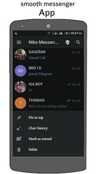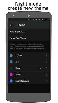 SIMPLE; Niko messenger is very simple and easy to use and it has a unique design. The current theme is changeable and editable, you can add custom wallpaper ( your finest picture or