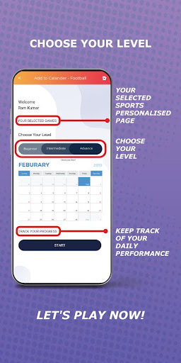 • Choose the level (Beginner/Intermediate/Advanced) and start learning your sport