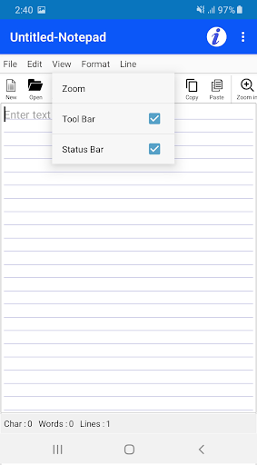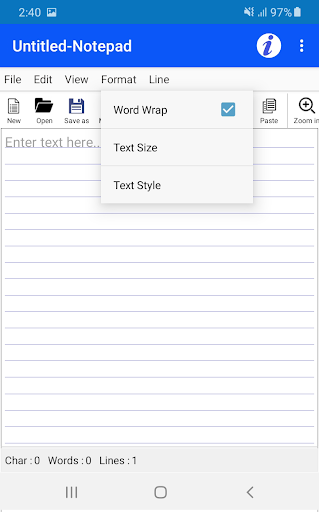 We have added all the important features of classic Text Editors in this app to make you feel like you are making TXT Format text file in your Laptop or PC.