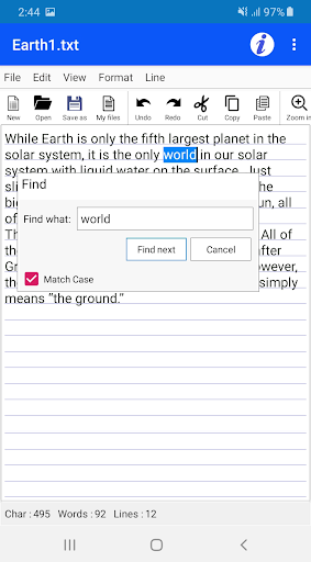 Text Search Function has Find word feature with Find Next option and Go to option.