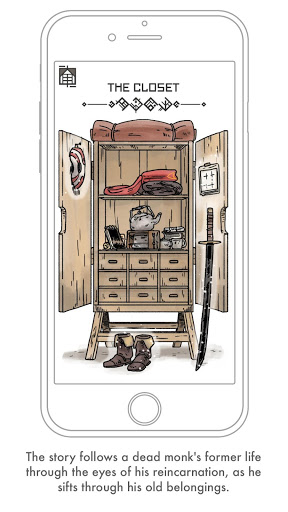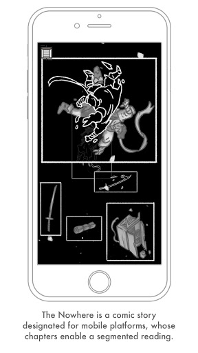 The Nowhere is a comic story, created especially for mobile reading. It tells the story of a monk's past lives through bits of his memories stored in his belongings. Each memory tells a short story from his life, and each offers a unique reading capability enabled only in this format.