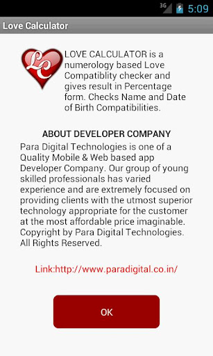 All the Calculations involved in developing this app are based upon Numerology. This Love Calculator app developed by Para Digtial Technologies in association with Shukracharya Astro Pvt Ltd, pioneer in Astrology, Numerology etc Fields.