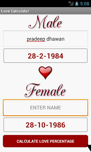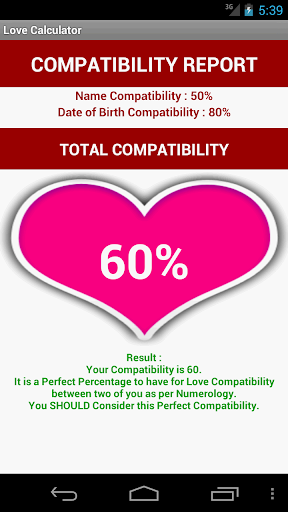 3. Tap Calculate Love Compatibility Button to get Reults for your love compatibility in percentage format.