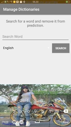 This application contains a Motor Drag Keyboard Theme that can make your mobile keyboard look more attractive and more passionate about typing messages for your loved ones