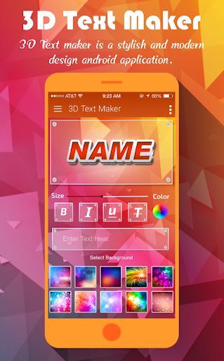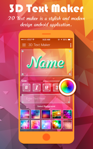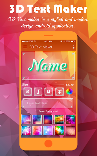 -3D text maker is a stylish and modern design android application. Using this app you can make animated 3D text is incredible style for your name maker and also set the stylish background.