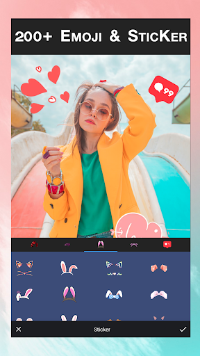 Photo Editor provides many tools and materials for decorating photos and photo collage: Sticker, Text, Mosaic, Draw, etc.