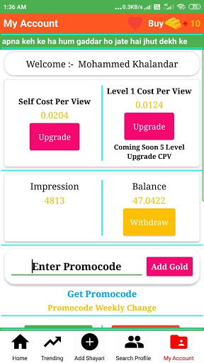 Join Me On Poetry Lite Earning, Upload Shayari To Earn Money, Watch And Earn, Refer And Earn UpTo 5 Levels, View And Earn, Visit And Earn, Upgrade Cost Per View And Earn. Enter My Refer ID SinUp Time 9739157600