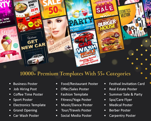 Poster Maker, Flyers Designer can help you to create poster like poster maker with name and image & banner maker photo and text.
