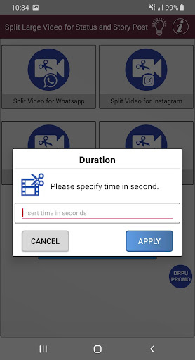 Besides this, this App also allows you to define custom time duration video length and settings for splitting the video that you can share to any chat message app or social media website including Whatsapp Snapchat Twitter Facebook or Insta.