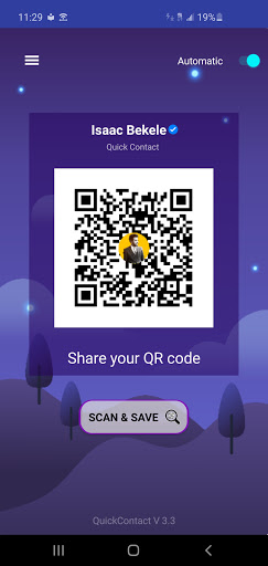 when the app save contact it has two ways auto save and manual save and it can change on the check button upper right side, when user use automatic it save contact directly and immediately after QR code scan, also when users use manual method it open phone contact save feature with auto filled data from the app