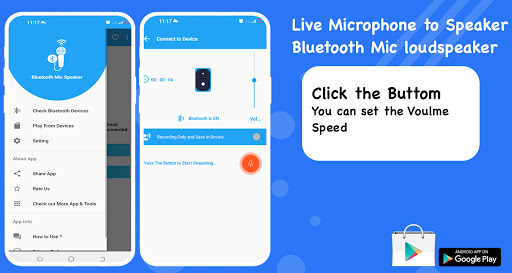 Let transform your mobile microphone to Bluetooth loudspeaker and many other megaphone. Actually people use mic to loudspeaker but android phone present the most help tool to connect your mobile microphone to remote speaker through Bluetooth in a good voice quality.