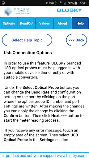 You can read and share ReadOut values with your smartphone or tablet free of charge from all electricity meters supporting the IEC 62056-21 standard. You can use this free software to reading bought BLUSKY brand optical ports for seamless and unlimited time. The software is compatible with the USB wired or Bluetooth Wireless optical ports you choose and automatically recognizes the optical ports. Therefore, You can start using it quickly without any installation.