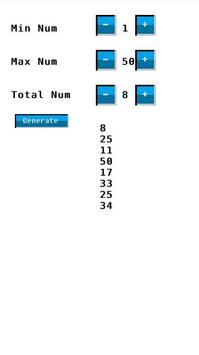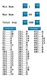 A program that generates number between a minimum of 1 and maximum of 50. You can select how many at a time you want to display (1-8). Now You can run the averager function to generate an average number of times a number has been selected.