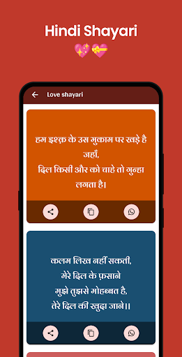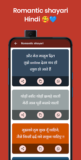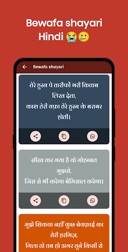 Very easy to use interface just swipe left and right to read the Sexy , रोमांटिक शायरी in Hindi and easy share to express sadness.