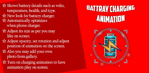 Battery charging animation & charging effects Screen provides a quick and easy way to create a professional stunning animated screen & battery charging show. Now it is easy to determine the phone battery charging level on your mobile lock and home screen.