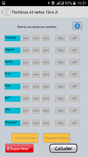 cette nouvelle mise a jour vous permet de saisir vos propres matière et coéfficient, et célà peu importe votre classe...Possibilité d'utilisation dans tous les pays