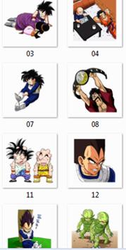 Cell, Yamcha, Android 17, Android 18, Son Goten, Bulma, Vegeta, Majin Boo, Kuririn, Freeza, Broly, Son Gohan, Trunks, Piccolo,