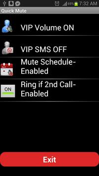 Option to send SMS to VIP if all calls are silenced. Set your own SMS message. 1 click to enable/Disable SMS service to VIP .