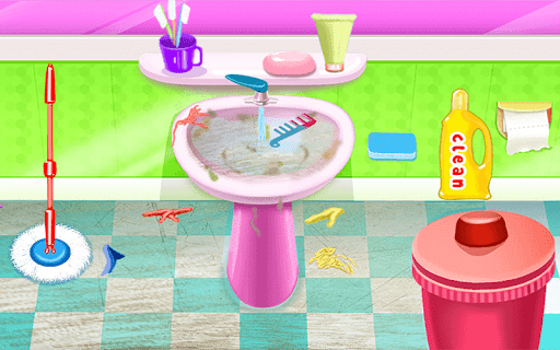 A big house is very beautiful, we have a big place to play with friends and family but it is very important to clean it every day. Our kid is home alone and today she needs your help to clean her bathroom. She has a very dirty bathroom, everything needs to be cleaned. This Daily Bathroom Cleaning App for kids is the best choice to have fun and learn some interesting things about cleaning. There are some rules and steps for this job, you have to pay attention to all details.