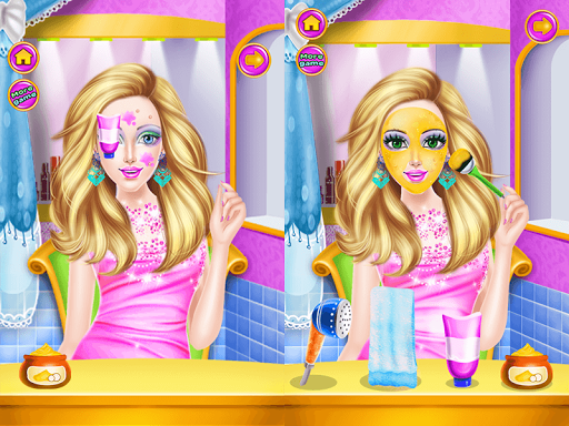 Today we can enjoy the sun with our friends, one of our friends is you and through this game for kids, you will have fun with us. Here, in this makeup game for girls, you'll be able to have some very nice surprise namely you will be able to attend a wedding. Today a friend marries and has a very big emotion, she wants everything to be perfect and only you can help her to prepare the most beautiful party. Every bride wants to look like a princess on her wedding day and today you are the person that can help her to be happy. Through this beauty game for girls, you'll be able to use all your skills and even learn a few beauty tricks. For a girl, makeup, manicure, and pedicure are very important and you will be able to assist Alina to have the most beautiful nails. You have to help her to look perfect, her face needs a special treatment, she needs an exfoliating cream, after this, you have to wash very well and apply a moisturizing cream.