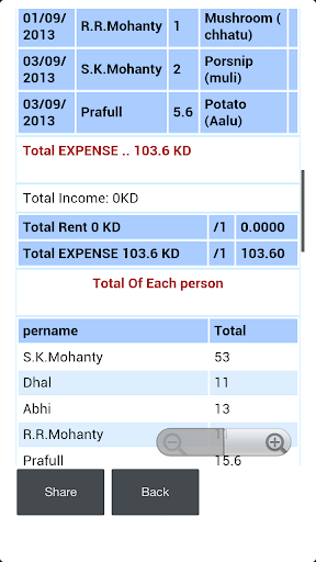 This Application for those peoples who share accommodation. Where more than one man share one room and expenses. For Example 5 people share one room and they make daily expenditure for food and other things.