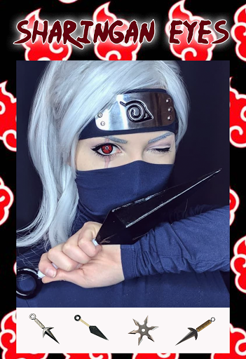 You will have ninja weapons in your photo like Shuriken, samehada, kusanagi .You can try hair, eyes, clothes of your favorite ninja and You can change your eye color into powerful sharingan, rinnegan of uchiha clan.