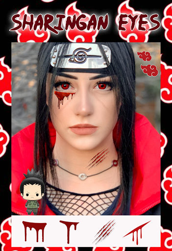 Do you like ninja from konoha and narotoeyes? This Sharingan Eyes Camera Photo Editor app is reference anime costume for cosplayer!. Change your eyes to sharingan like Sasuke uchiha or kakashi by use tool. NarutoEyes Photo Effect is packed with realistic sharingan eyes and also Narutohair from narutoamino.