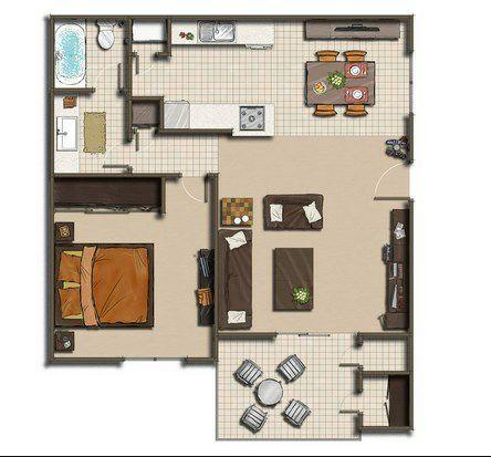 1. Model floor plan for a house with 2 bedrooms
