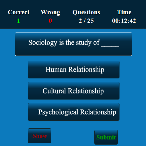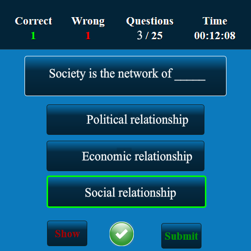 This Sociology app has been developed for testing your skills of Sociology . This app has more than 10,000 multiple choice questions and answers. This Sociology quiz app suits for all lower, intermediate and higher levels. The questions at all levels will be displayed randomly. The user can improve Sociology knowledge and user can score well in high school, college and competitive level examinations. This is a free version and you can be used in both offline and online.