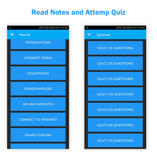 This Application contains Basic notes of Internet that is taught in Educational institutes to the Students of IT. The Chapter covers topics of: