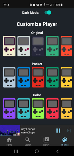 Customize Player: Choose from a wide variety of GameBoy Original, GameBoy Pocket, and GameBoy Color inspired player themes. Dark and Light themes for menus are also available.