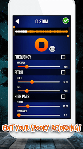 Unleash your creativity with horror voice changer app. Record yourself singing and try the audio filter you like the most! There are endless options that you can try to modify your voice! Creating Halloween voices with this voice modulator is exciting!